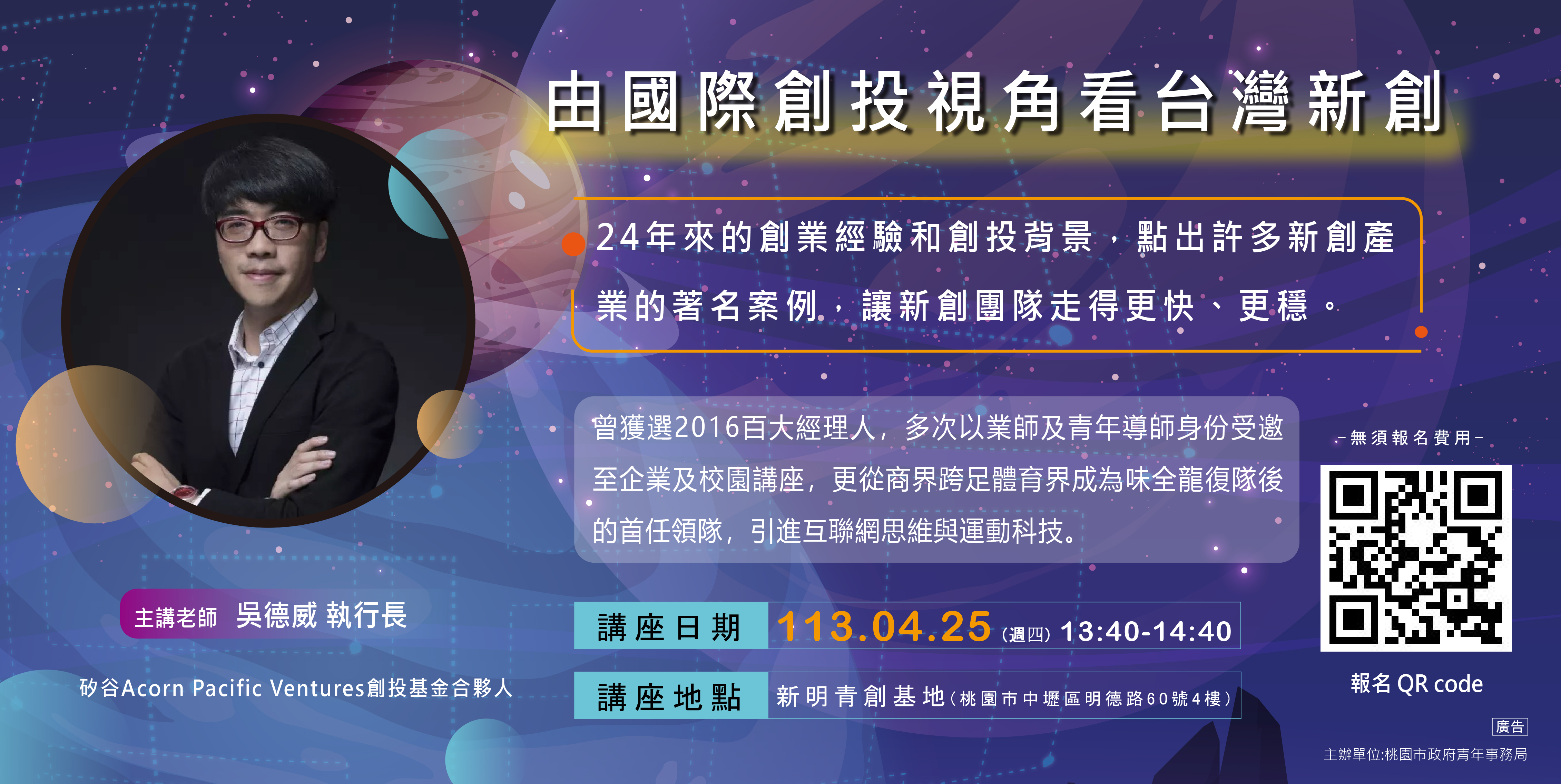 地點:新明青創基地共同工作空間(桃園市中壢區明德路60號4樓)